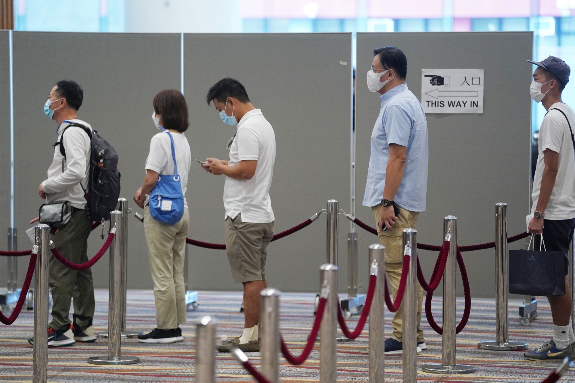 9月19日,在香港会展中心投票站,选民在排队投票。新华社记者 王申 摄