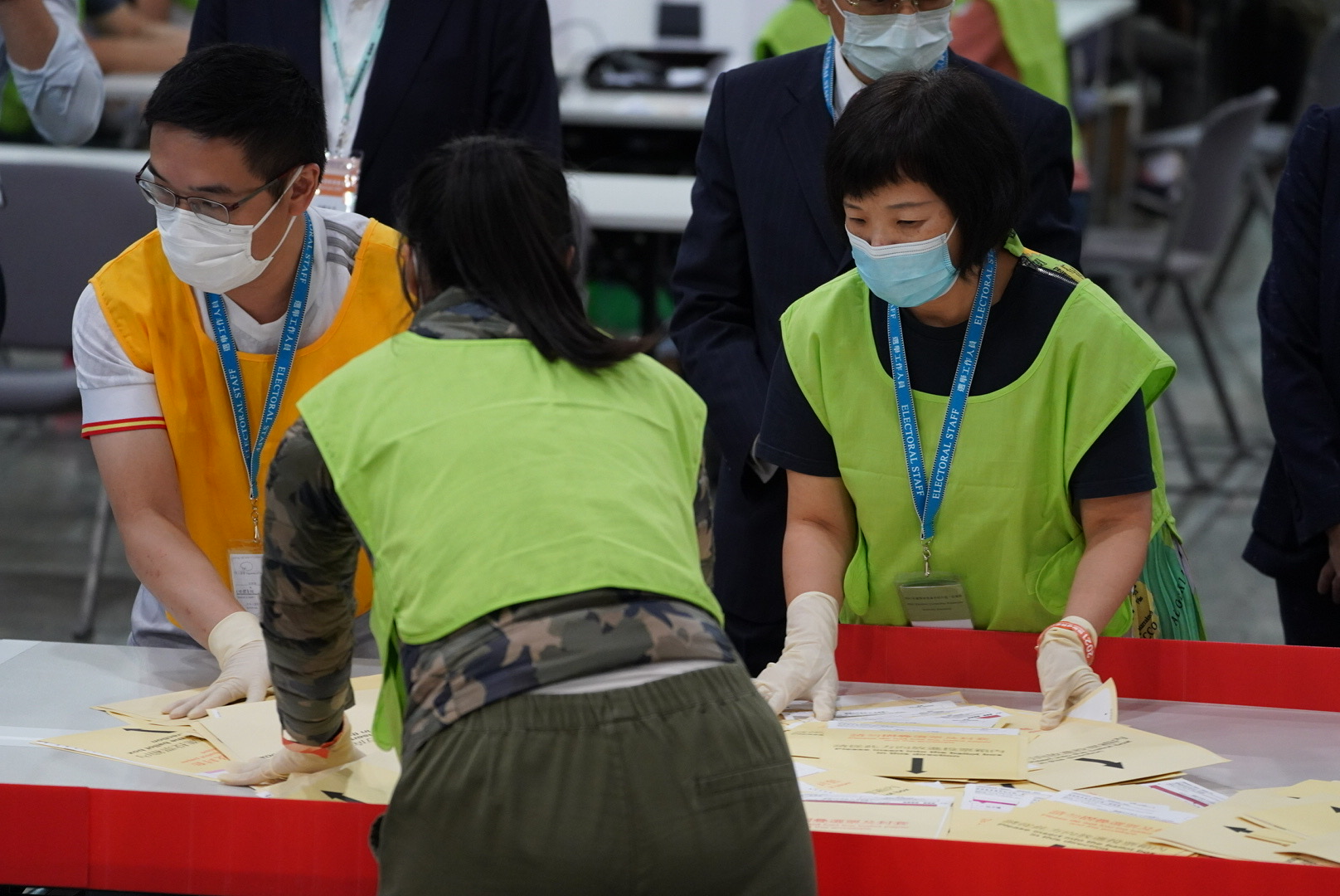 根据防疫规定,选民和工作人员都必须佩戴口罩,进入票站后要测量体温、手部消毒,保持社交距离。各投票站还设立了专供长者、孕妇等有需要人士的“关爱队”快速投票通道。