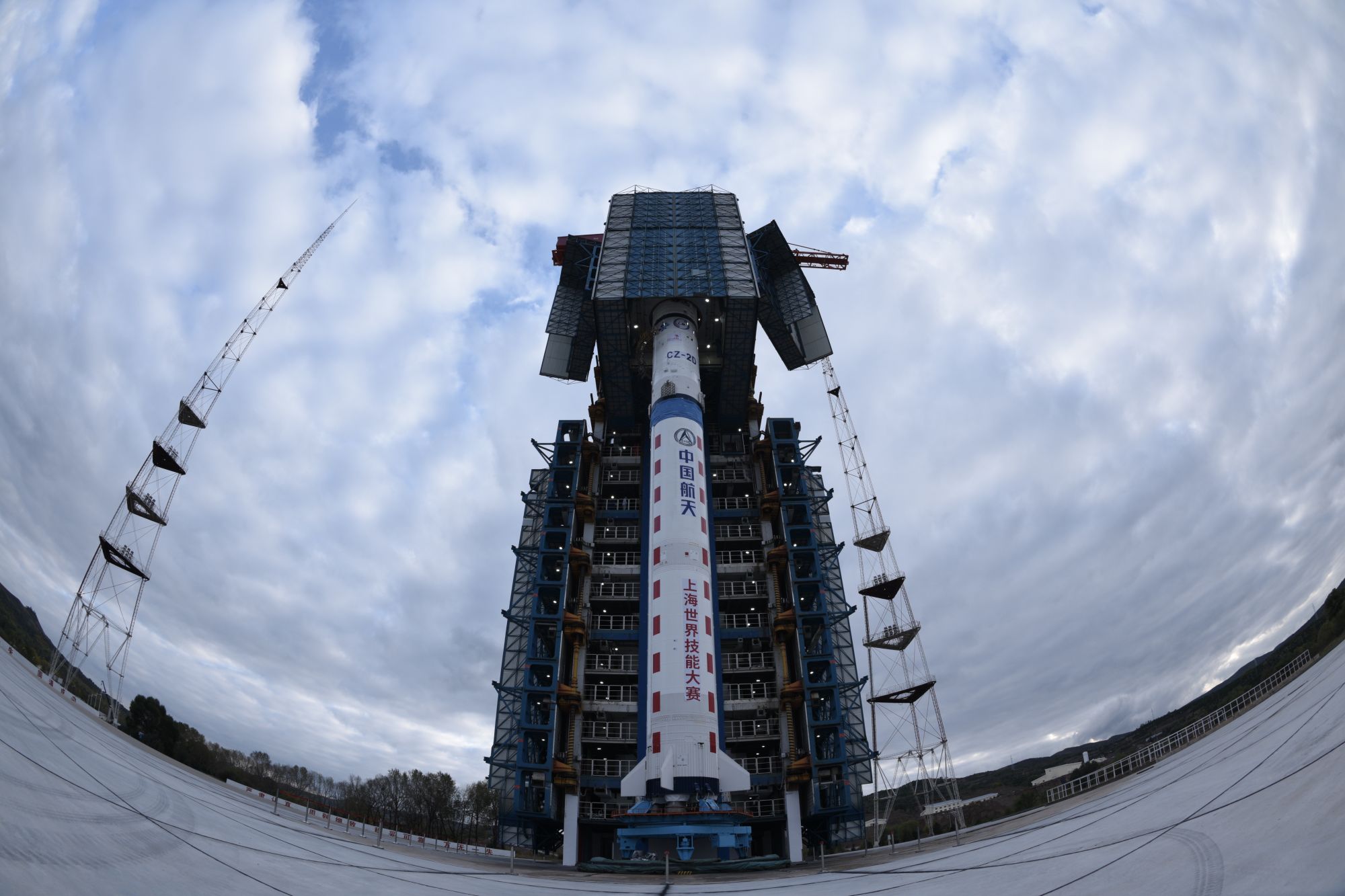图为此次发射“羲和号”前的长征二号丁火箭。(航天八院提供 摄影:孙公明)