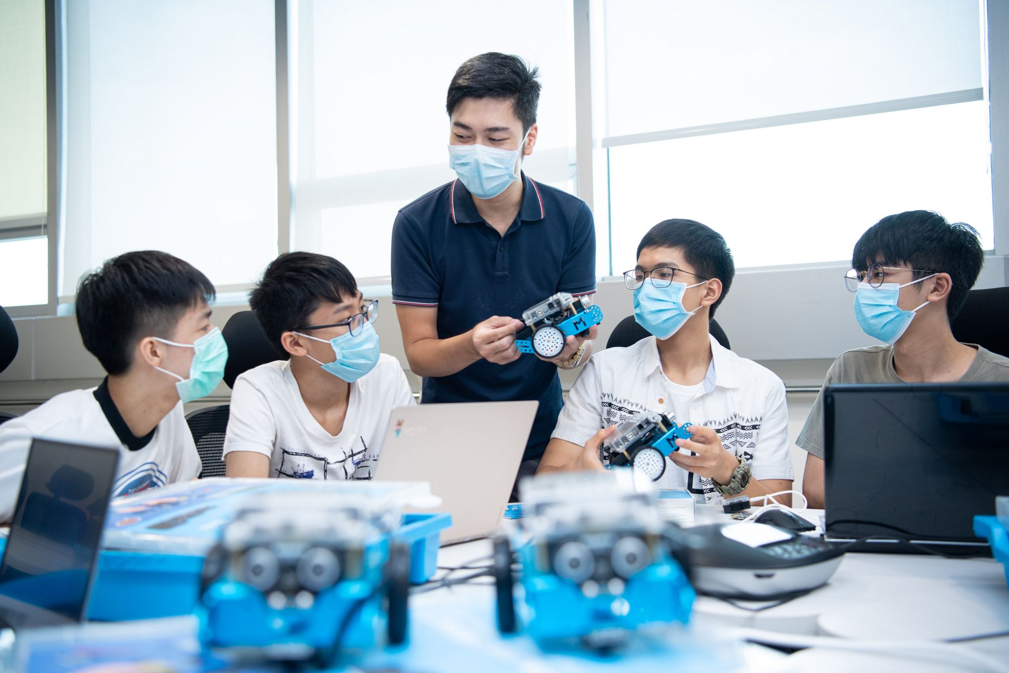 2020年7月14日,创业者吴以航在澳门青年创业孵化中心为学生上培训课。“80后”吴以航是澳门青年创业孵化中心会员,2019年,他进驻广州市天河区港澳青年之家,成立蓝点教育技术(广州)有限公司。新华社记者 张金加 摄