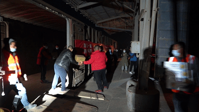 21日中午,额济纳旗东600多公里外的巴彦淖尔市,派出由50名医务人员组成的医疗队赶赴额济纳旗之后,当晚又启动援助物资调运工作,星夜驰援额济纳旗。22日凌晨,紧急调配的一批医用防护服、口罩、多功能防护面罩等医疗物资,以及蔬菜、羊肉、牛奶、方便面等防疫物资紧急装车,由专列送往阿拉善盟。