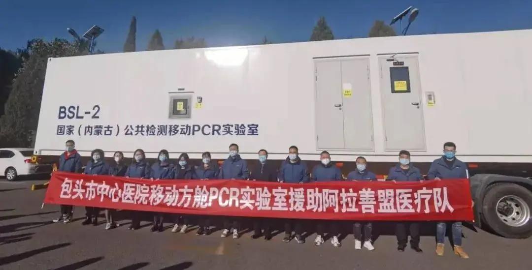 额济纳旗东800多公里外的包头市,由14名工作人员组成的包头市中心医院移动方舱PCR实验室医疗队,21日集结出发驰援阿拉善盟,及时充实额济纳旗核酸检测力量。