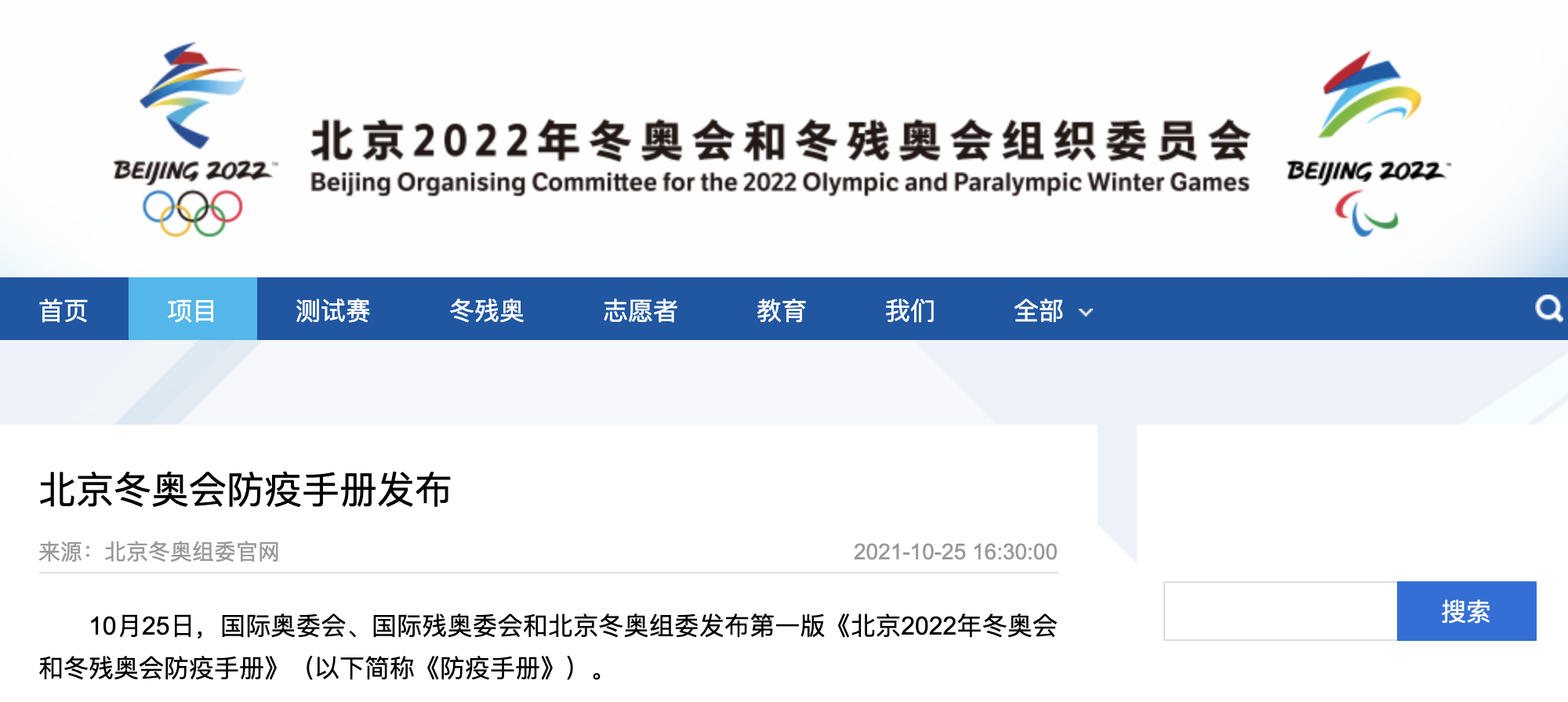 《北京2022年冬奥会和冬残奥会防疫手册》