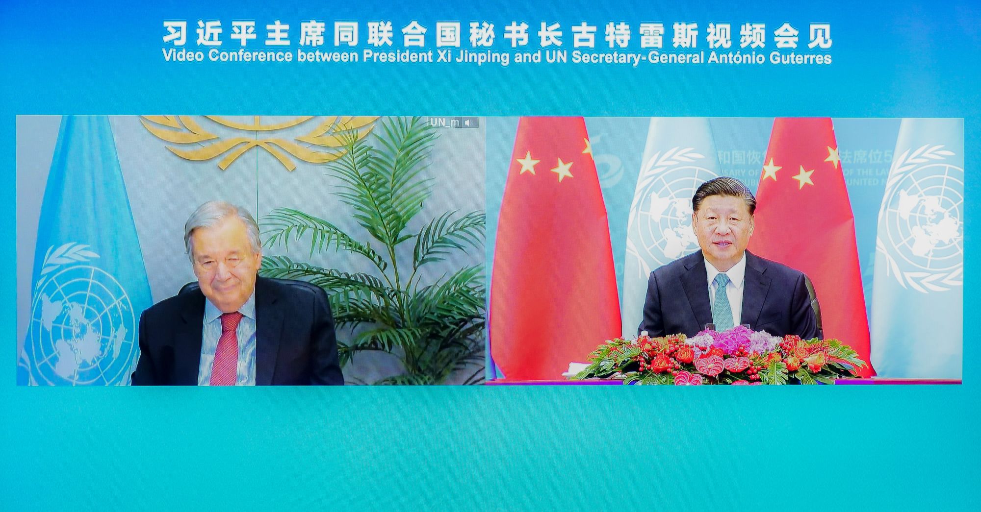 10月25日上午,国家主席习近平在北京人民大会堂以视频方式会见联合国秘书长古特雷斯。