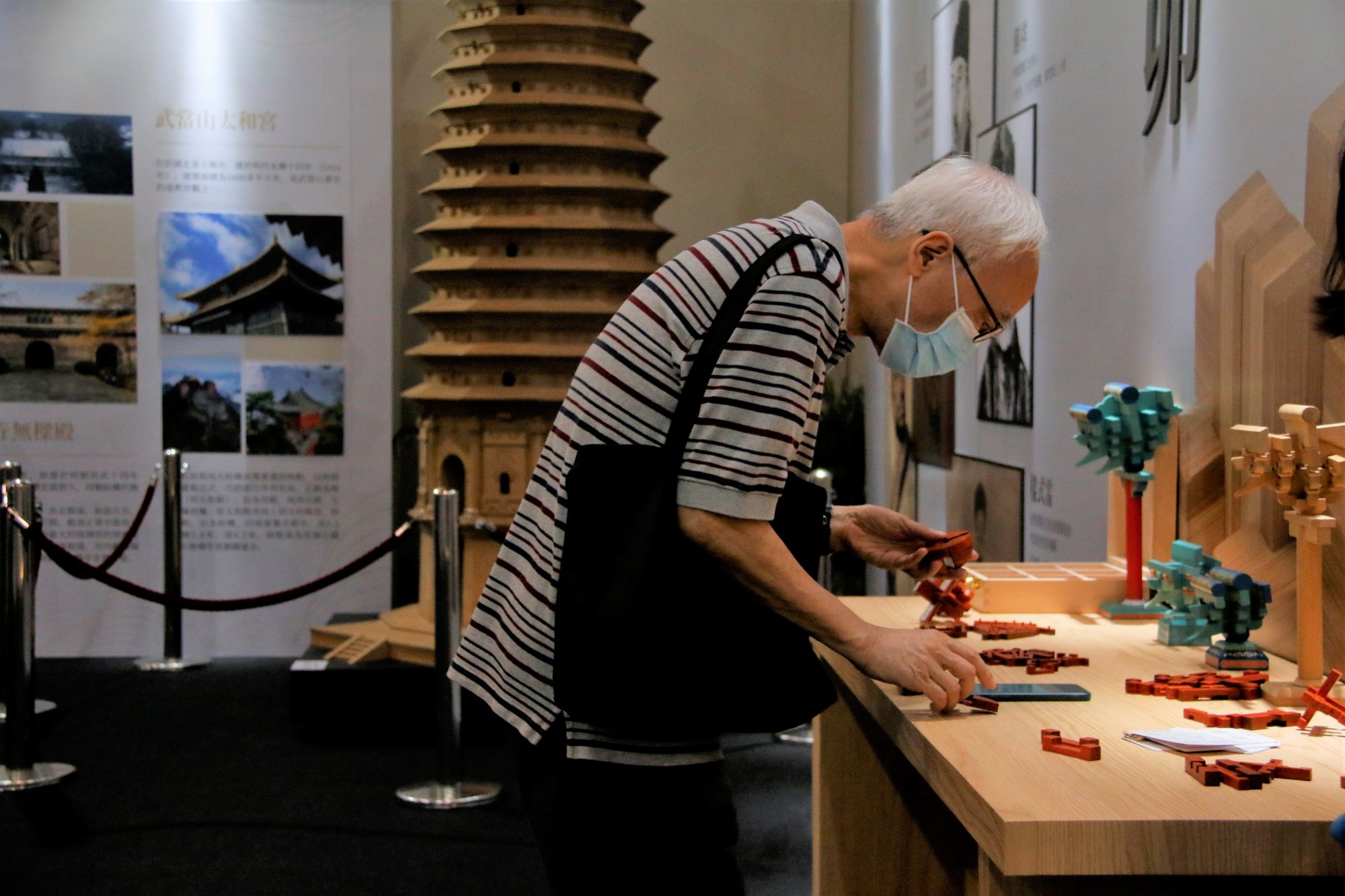 “今天看到了很多宫殿、砖楼、高塔等古代建筑精美展品,现场还有模型展示传承千年的榫扣卯合技艺,在虚拟现实技术体验区更让人仿佛身处山水古建之中,体会到与自然融为一体的独特东方美学。”今年30多岁的香港青年张先生随身带着相机,不时对准展品按下快门。