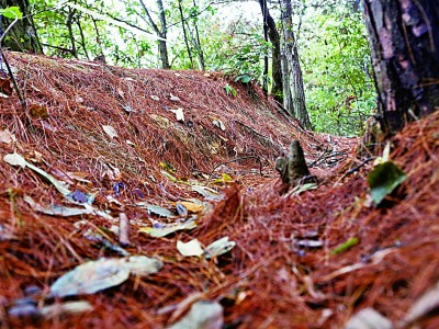 老鸦山上遵义战役战斗遗址的战壕,经过80多年的风雨,如今出露高度只有10—35厘米。秦波摄/光明图片