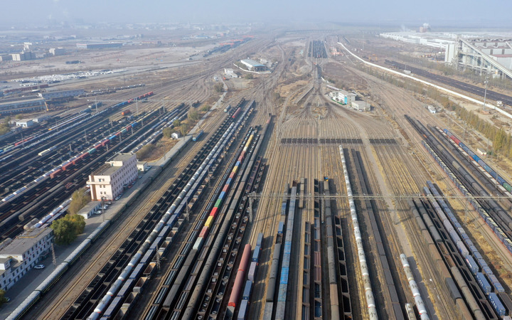 ↑这是包头西站运煤列车编组场(11月2日摄,无人机照片)。新华社发(夏亮 摄)