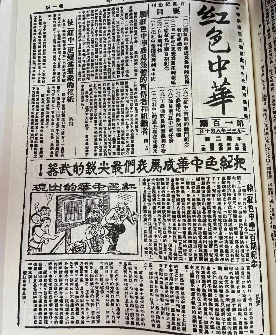 作为传承《红色中华》报红色基因的新华社报纸——《新华每日电讯》的编辑记者,我们屏气凝神,翻看眼前两大本厚重的《红色中华》报影印合集。一篇篇吹响号角的战斗檄文、一幅幅生动鲜活的插图漫画,仿佛把我们带回那个烽火连天的岁月:一群心怀革命理想的年轻人,在艰苦又充满希望的苏区以笔为枪,书写人民政权中央机关报的开端,开创真正属于人民的新闻事业。