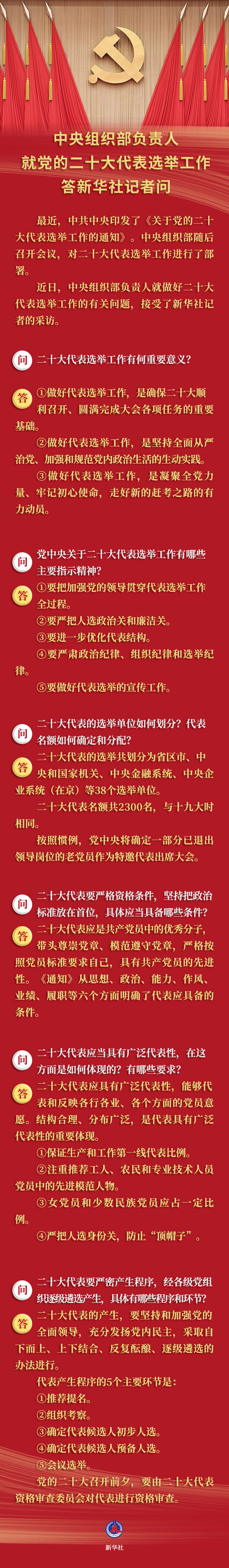 中央组织部负责人就党的二十大代表选举工作答新华社记者问 2021-11-19 18:02:54浏览量:65.6万