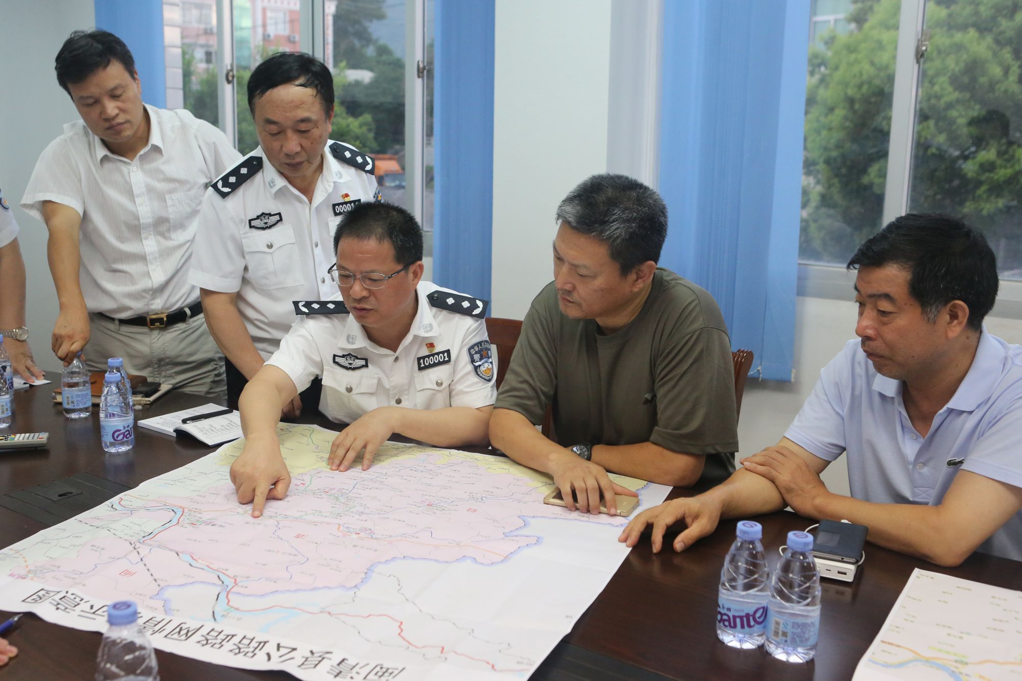 潘东升(中)在闽清指导防抗台风“尼伯特”(2016年7月12日摄)。新华社发(福州市公安局供图)