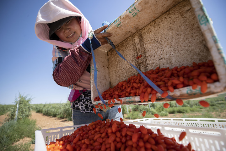 “此前以出售鲜果为主,‘鸡蛋放在一个篮子里’,价格极易受市场波动影响。”红寺堡区自然资源局副局长年波说,今年10月,红寺堡区首家枸杞原浆加工厂落户龙源村,半个多月就为当地枸杞种植户创收20多万元。