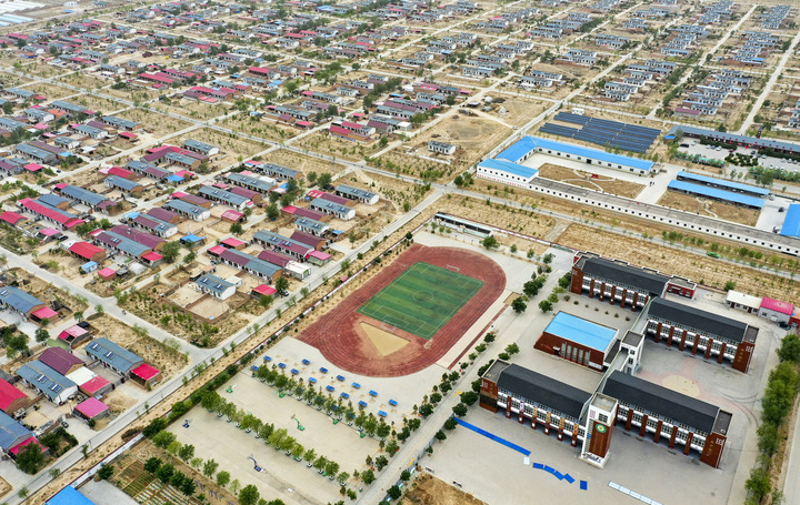 这是宁夏吴忠市红寺堡区红寺堡镇弘德村一角(2020年6月7日摄,无人机照片)。新华社记者 冯开华 摄