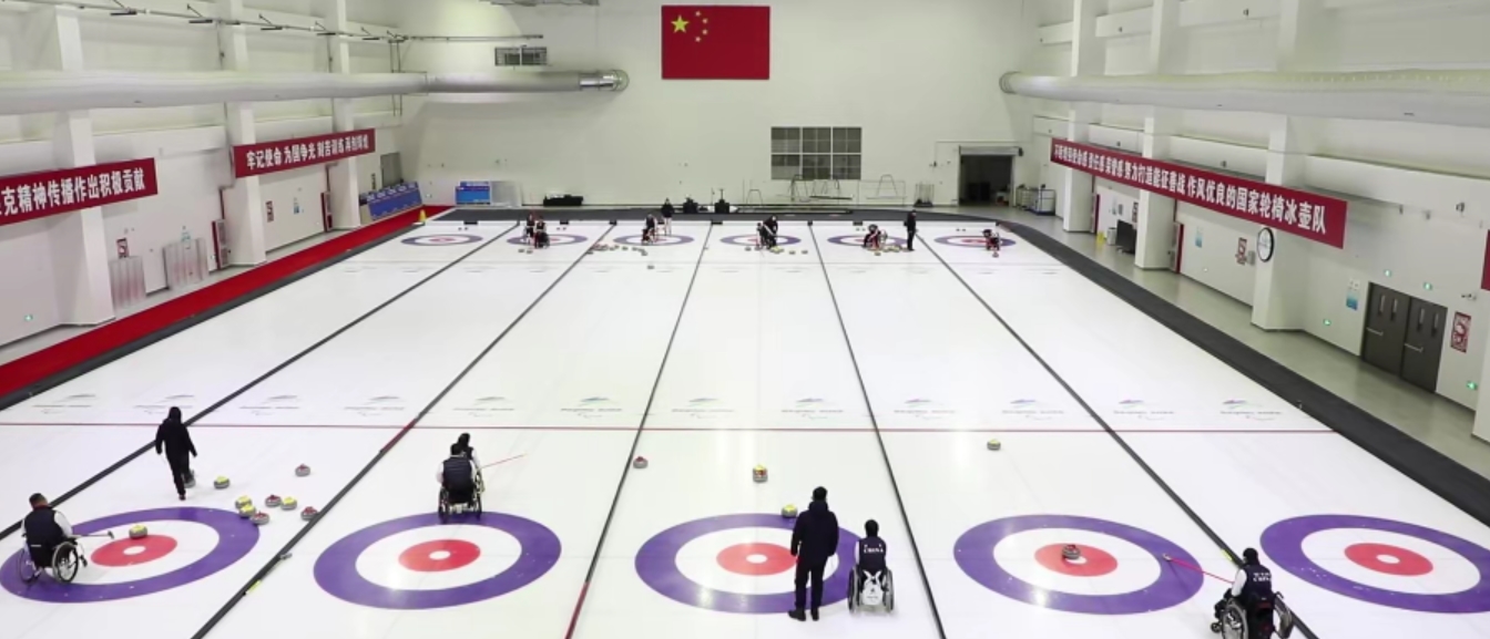 正在馆内集训的中国轮椅冰壶队是一支荣誉之师,2018年在平昌冬残奥会拿到中国冬残奥会历史首金,2019年在轮椅冰壶世锦赛一举夺魁,2021年10月份在“冰立方”举行的世锦赛上再度拿下金牌。