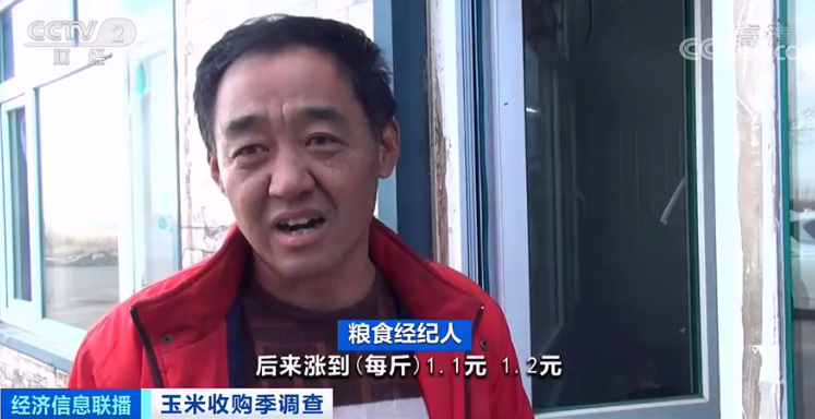 粮食经纪人:因为去年开始每斤0.9元多,后来涨到每斤1.1元、1.2元,都不愿意卖,所以收粮也不好收。