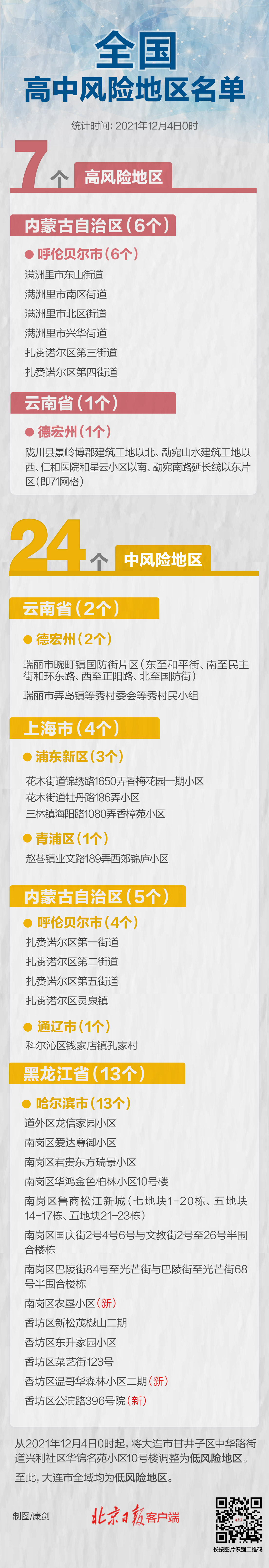 12月4日0时起,辽宁省大连市甘井子区中华路街道兴利社区华锦名苑小区10号楼调整为低风险地区。至此,大连市全域均为低风险地区。