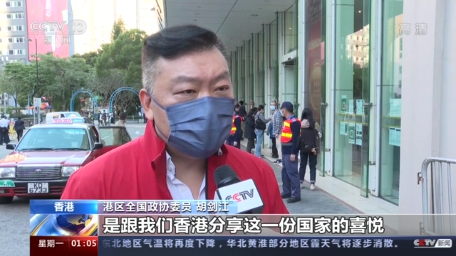 港区全国政协委员 胡剑江:这一次国家的奥运运动队来到香港,是跟我们香港分享这一份国家的喜悦,我们也感受到中央关爱我们香港市民的这份感情。我相信这一份体育精神,这一份爱国精神,我们会铭记于心,也会感动到香港广大的市民。