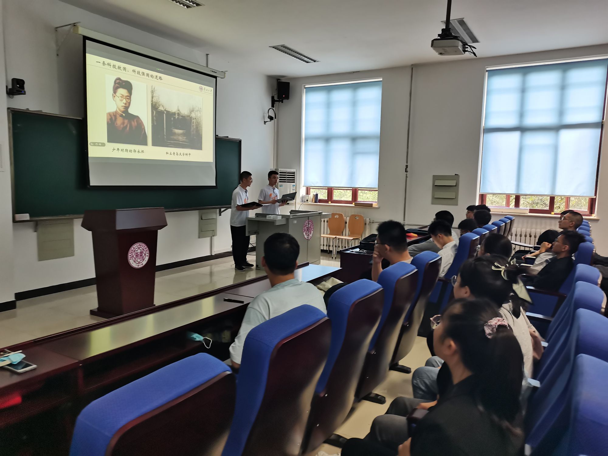 “学生永怀精神宣讲团”面向南开大学物理科学学院2021级硕博新生开展宣讲(9月6日摄)。新华社发(南开大学物理科学学院供图)