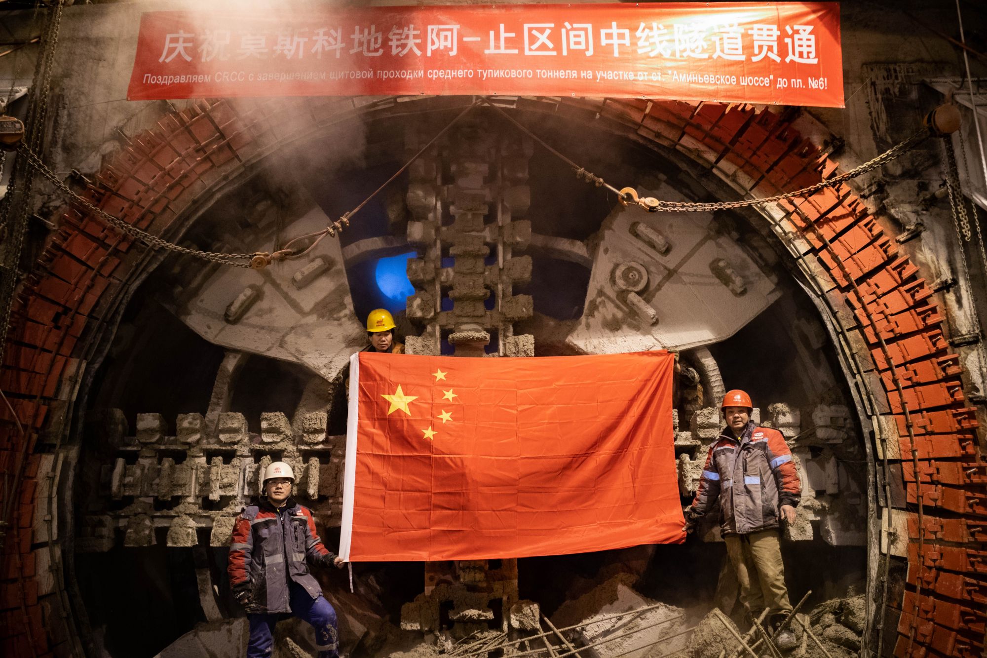 12月7日,由中国铁建承建的莫斯科地铁第三换乘环线西南段投入运行。俄罗斯总统普京以视频连线形式出席通车仪式并宣布正式开通。2017年1月,中国铁建中标莫斯科地铁第三换乘环线西南段项目,标段全长5.4公里,包含阿明耶沃站、米丘林大街站、韦尔纳茨基大街站3个车站和9条盾构隧道建设任务,这也是俄罗斯首次在地铁施工领域引进中国企业。走进米丘林大街地铁站,红色立柱、团寿纹、祥云等中国元素随处可见。这里已经成为中俄友谊的新地标,展现出“一带一路”上的跨文化盛景。