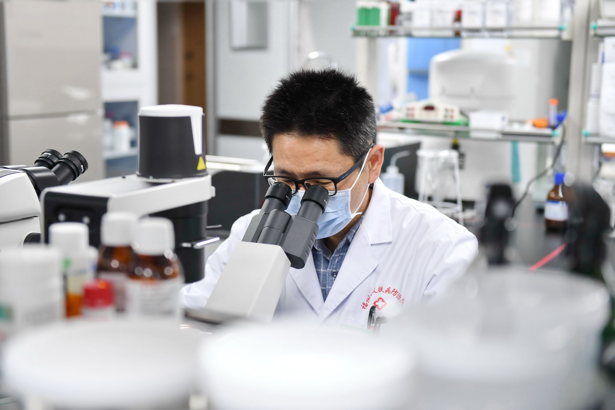 12月8日,陈柏叡在福州市皮肤病防治院实验室开展研究。新华社记者 林善传 摄