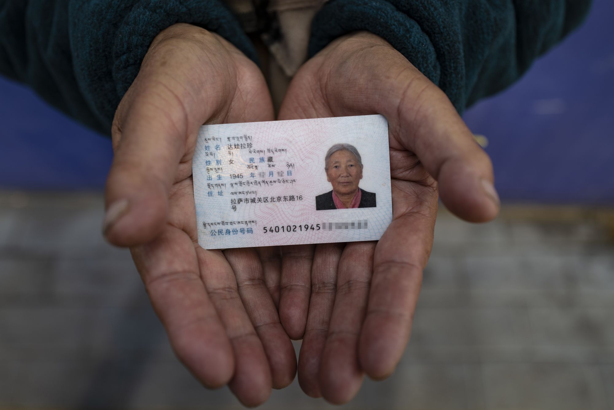 达娃拉珍老人的身份证(12月14日摄)。