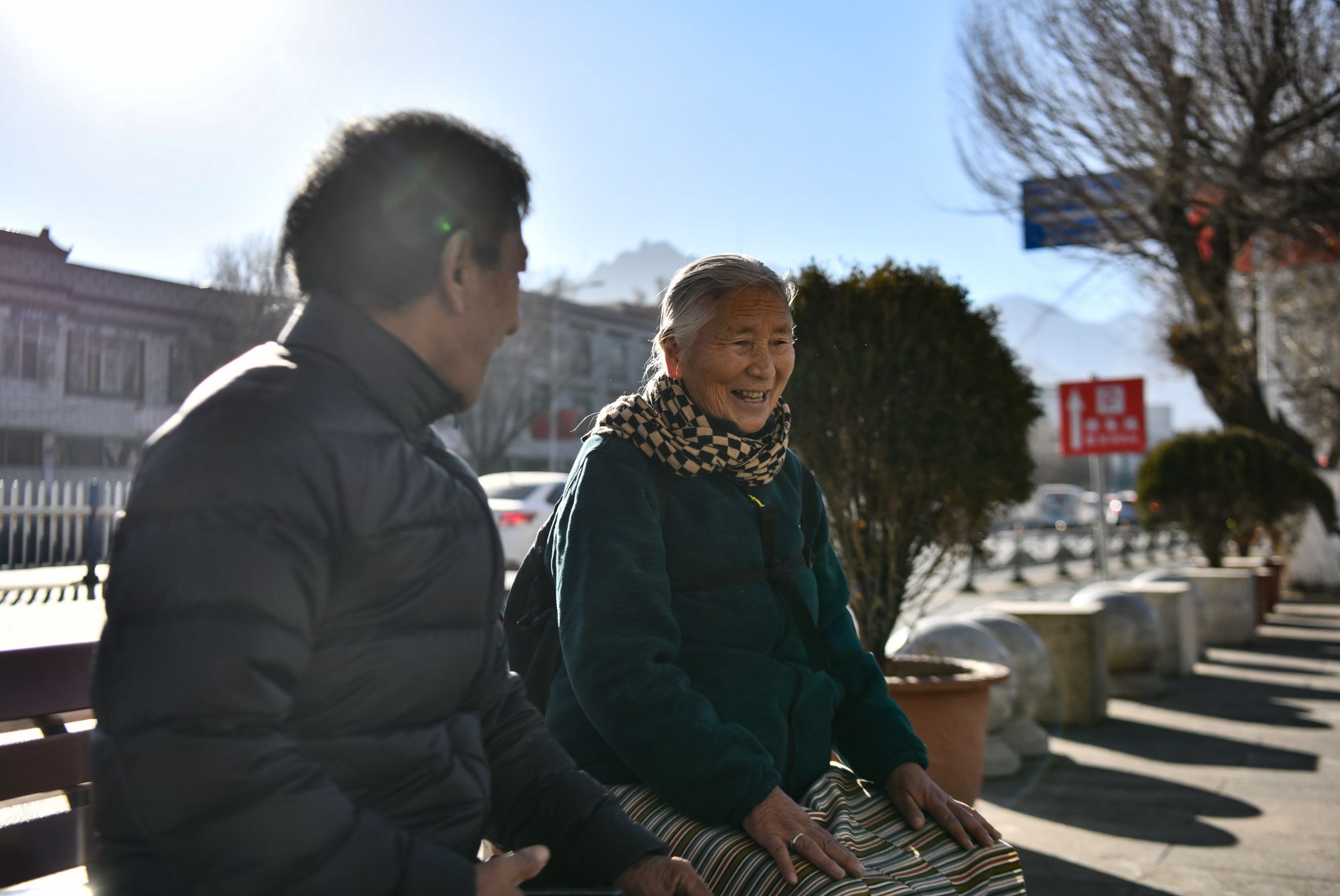 达娃拉珍(左)和朋友走在拉萨街头(12月7日摄)。