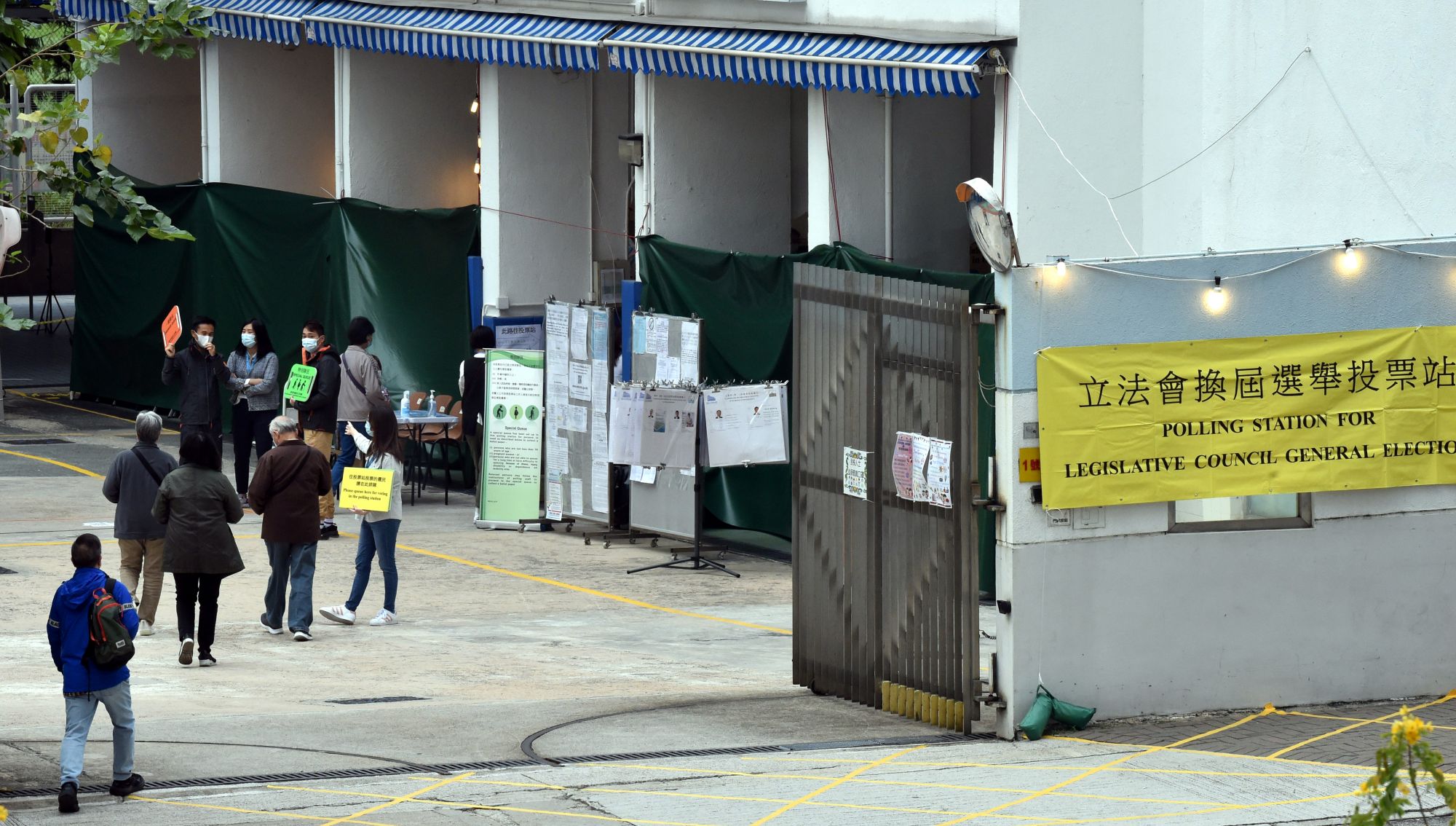↑12月19日,在位于香港黄埔的投票站,选民在排队准备投票。新华社记者 王申 摄