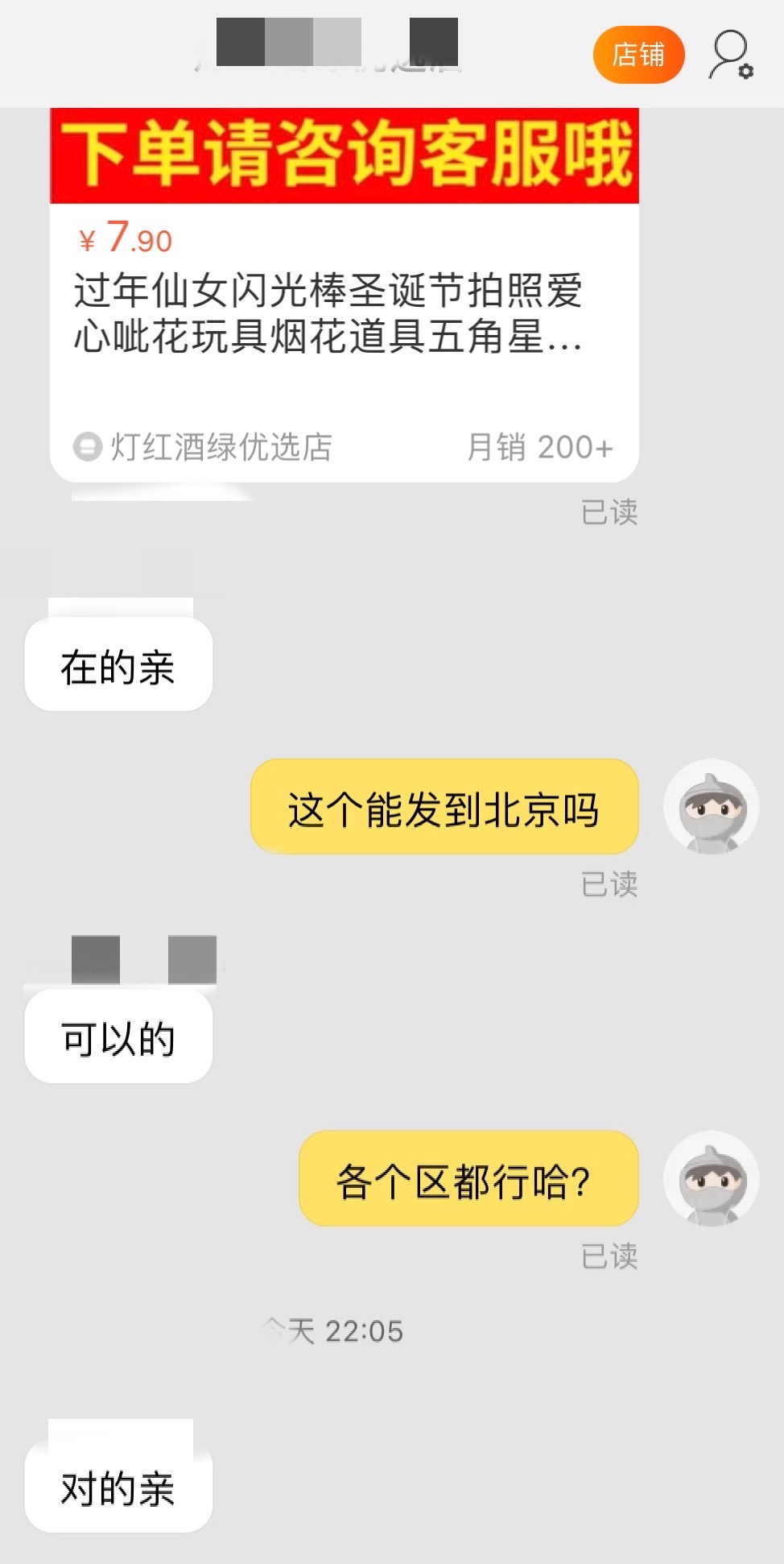 记者发现,电商平台上仍有不少店铺在打“擦边球”,并不宣称自己售卖烟花,而是以“创意饰品玩具”“呲花蜡烛”“燃烧棒”等名义暗地售卖这种冷烟花,销量高的店铺月销量达到几千笔。记者询问了多个商家,商家都表示“可以发货到北京”。