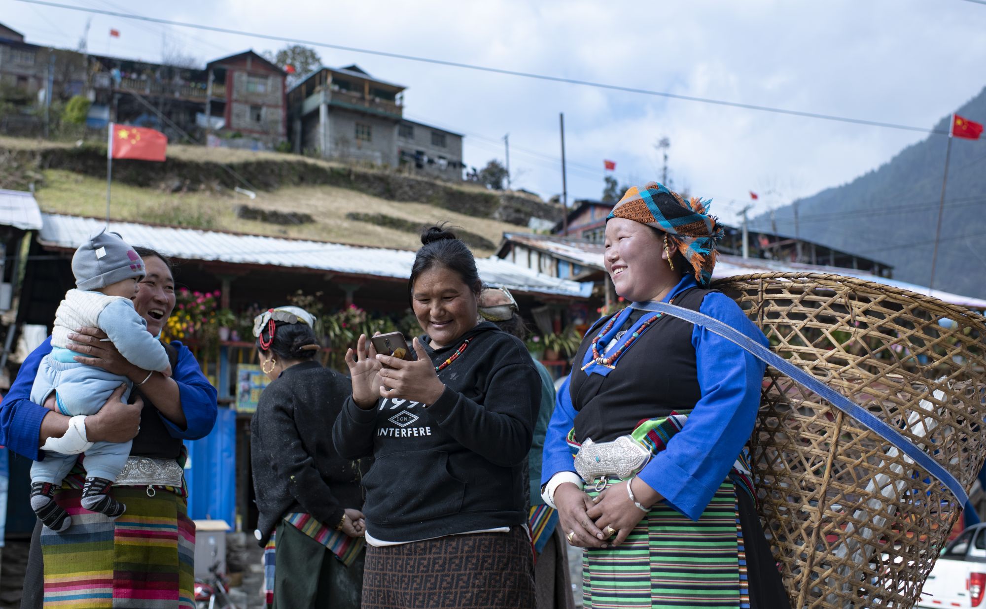 陈塘镇的夏尔巴妇女在村头开心聊天(11月24日摄)。 新华社记者 普布扎西 摄