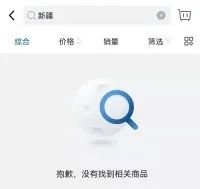 但是,点击搜索“新疆”之后,却得到了“抱歉,没有找到相关商品”的结果。