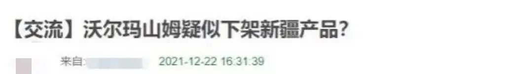 12月22日,很多网友在社交平台发帖,称美国零售商沃尔玛旗下的高端会员制商店——山姆会员商店“疑似下架所有新疆产品”。