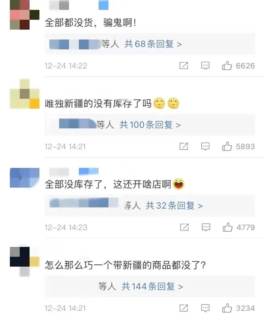 所有的新疆产品突然一起没货了?很多网友表示不相信。
