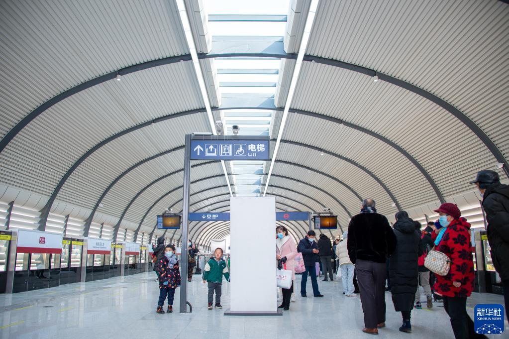 12月26日,市民在武汉轨道交通5号线中医药大学站,准备乘坐湖北首条全自动驾驶线路。新华社发(伍志尊摄)