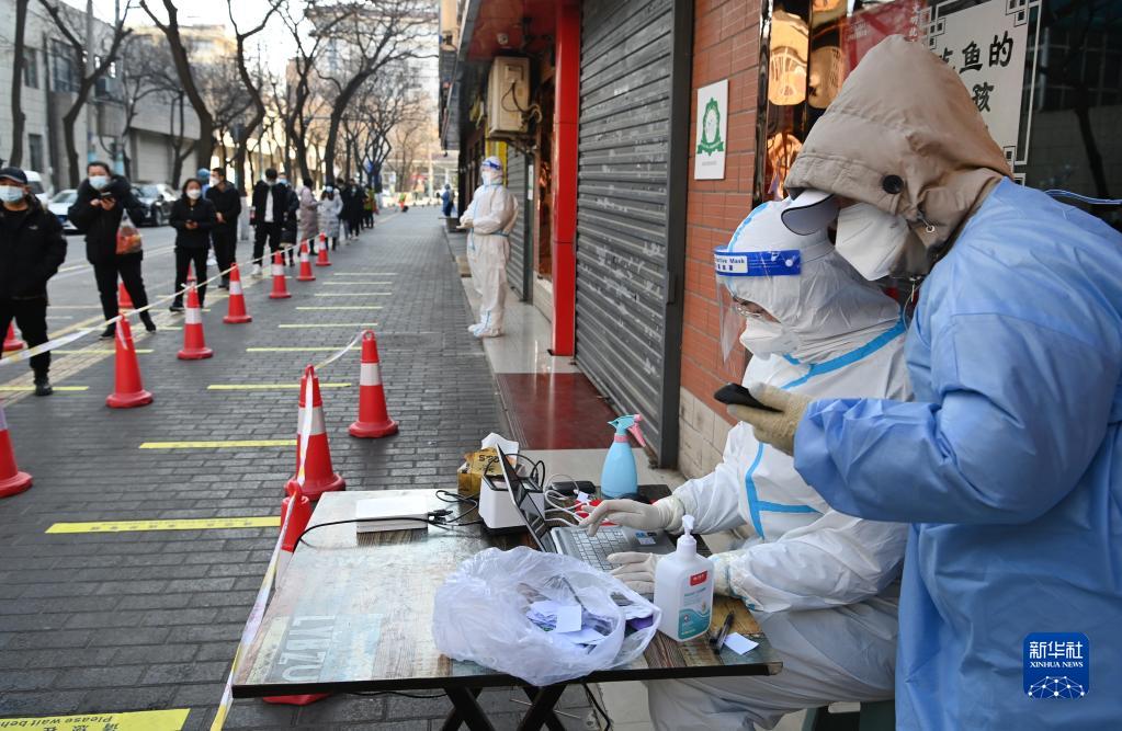 12月29日,市民在西安市皇城西路排队进行核酸检测。新华社记者 陶明 摄