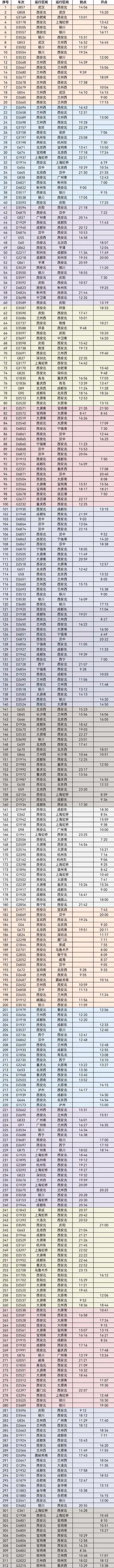 1月5日西安站停运列车