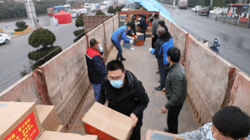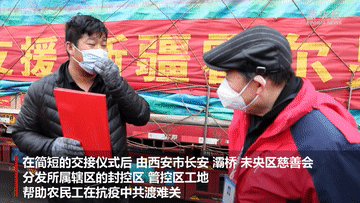 新疆霍尔果斯爱心企业捐赠的西安抗疫百万小油馕7日上午抵达西安六村堡收费站,在简短的交接仪式后,由西安市长安、灞桥、未央区慈善会分发所属辖区的封控区、管控区工地,帮助农民工在抗疫中共渡难关。