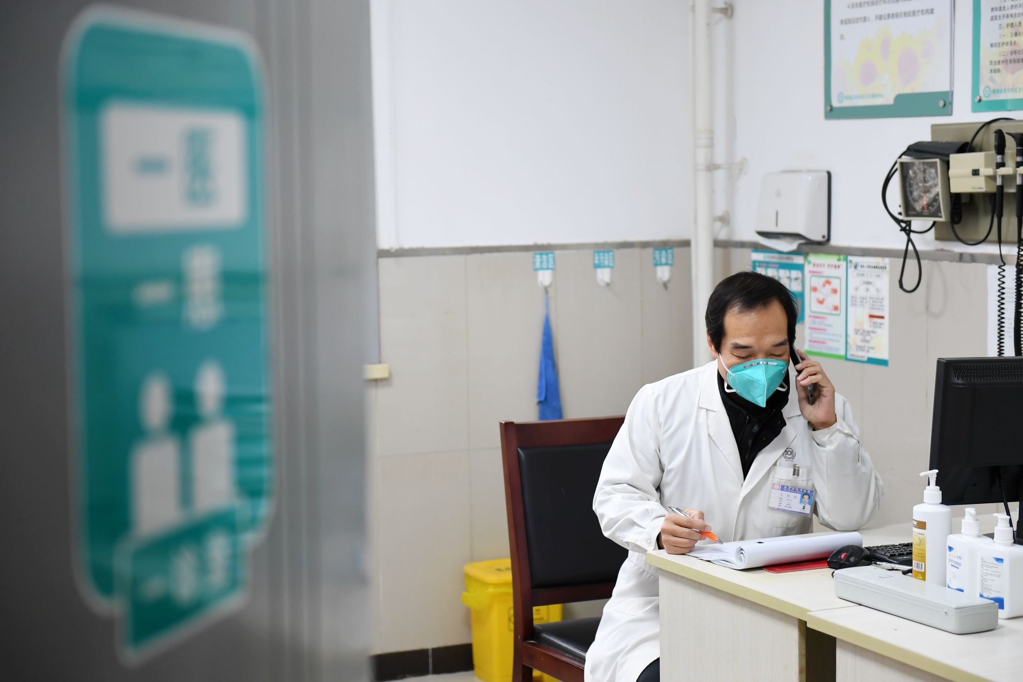 1月8日,在西安市莲湖区北关社区卫生服务中心,医生郭永通过电话接诊患者。新华社记者 李一博 摄