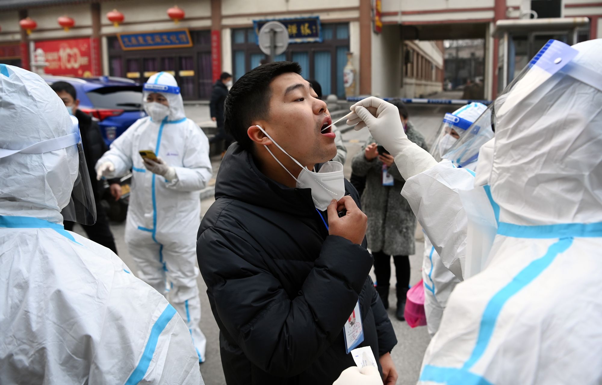 1月10日,西安市碑林区三学街社区“流动核酸检测组”为居民做核酸检测。新华社记者 陶明 摄