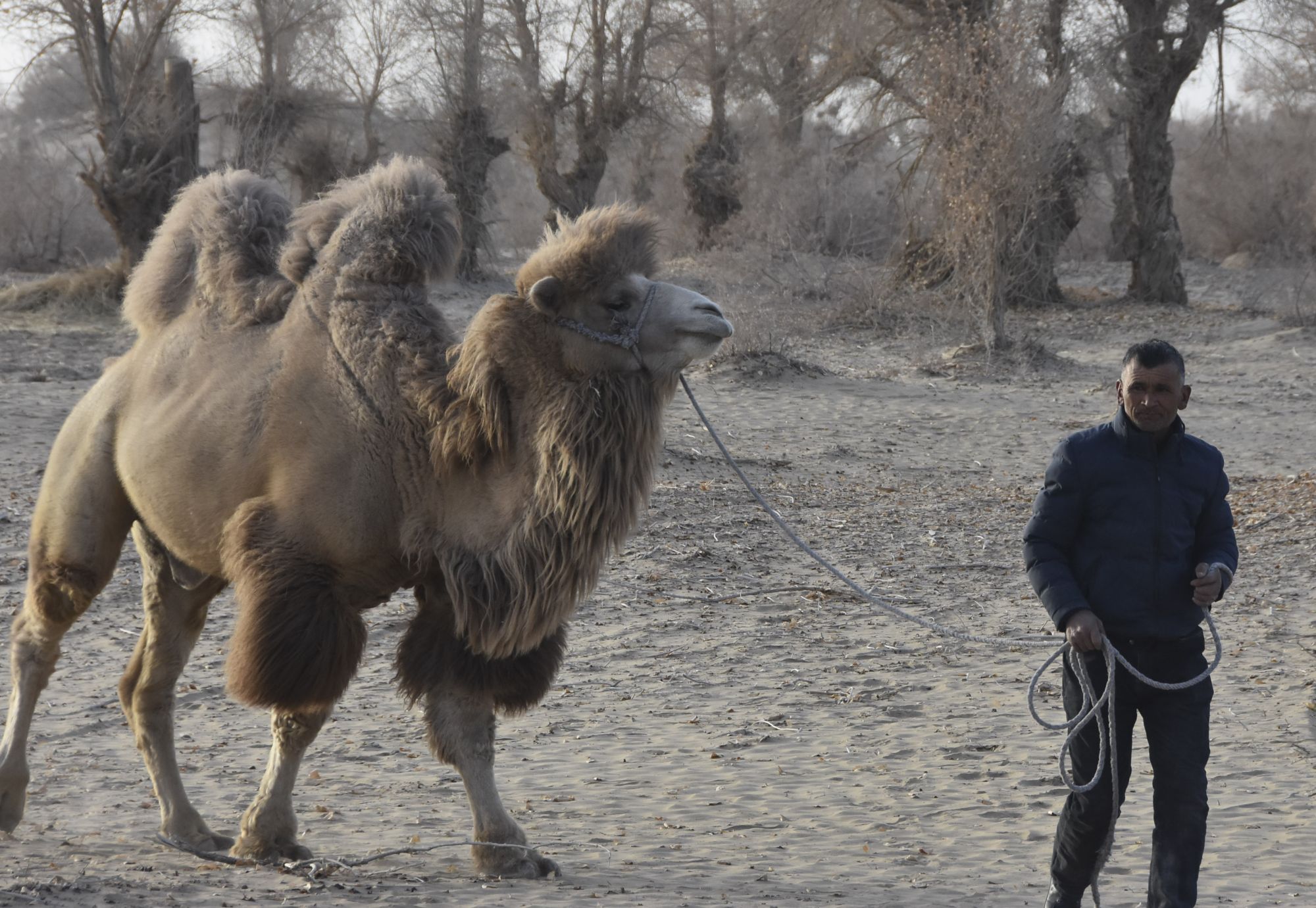 新疆于田县达里雅布依乡村民在老村旧址发展骆驼养殖(2021年11月12日摄)。新华社记者 顾煜 摄
