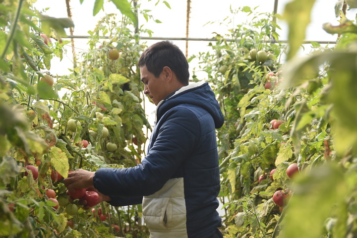 31岁的吐逊马木提·依明2019年从大山里搬迁到叶城县阿克塔什镇,原是牧民的他开始学习蔬菜种植技术。去年7月,他以每座每年5000元的价格承包了7座大棚,其中4座种植西红柿、3座种植西瓜、甜瓜和反季蔬菜。