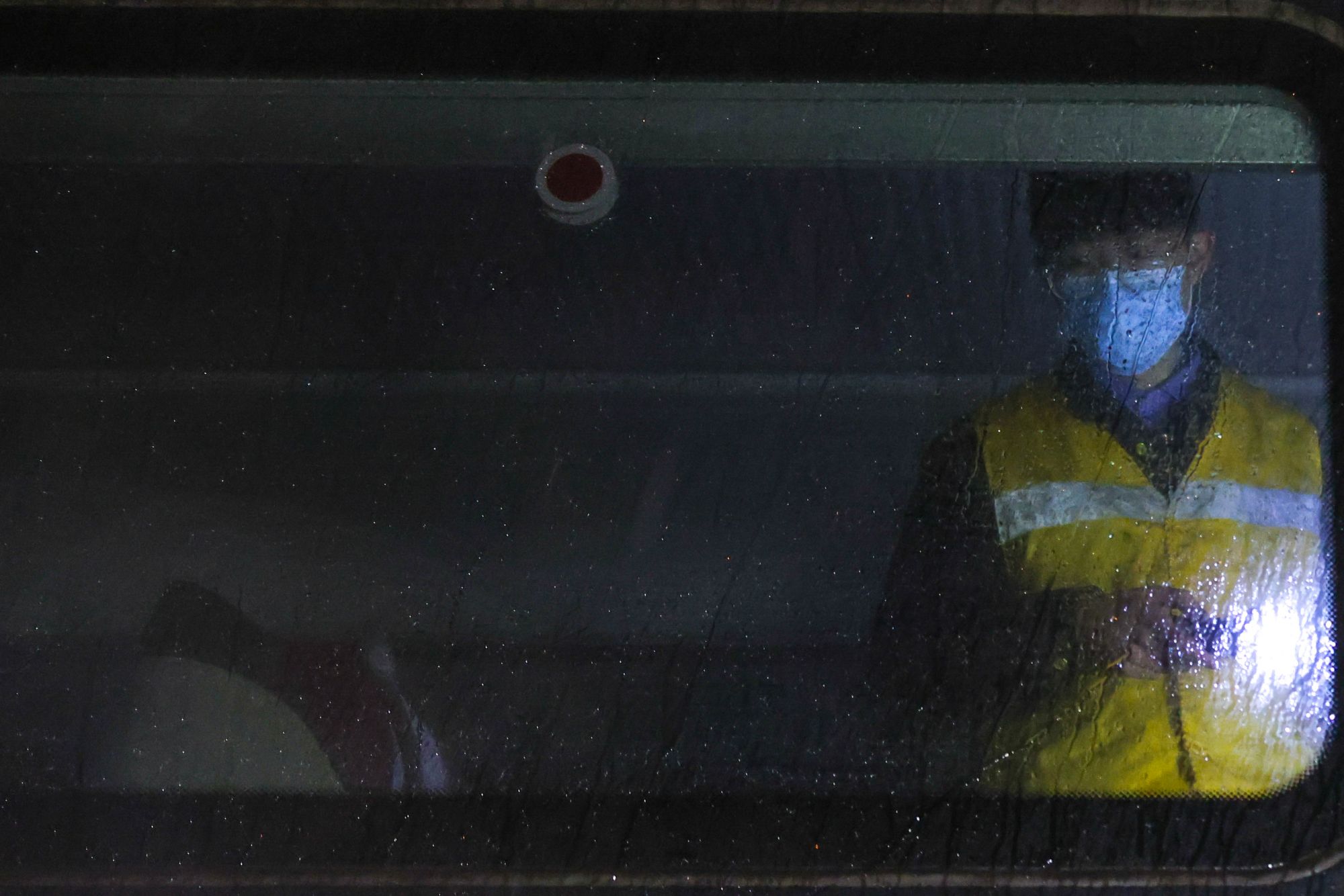 1月16日,地勤机械师洪昊阳在动车组车厢内巡查。