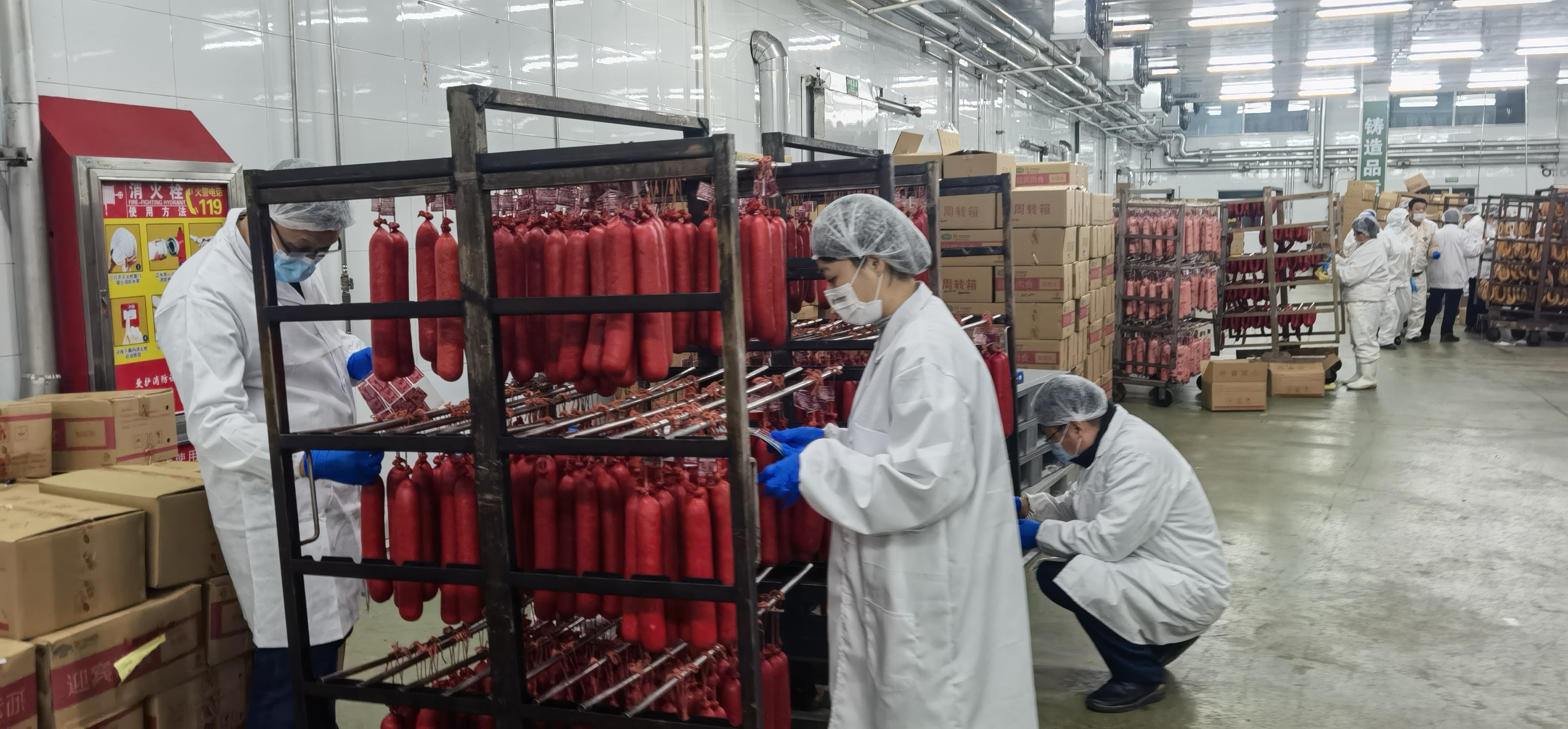 “我们现有一条屠宰量可达到日均3000头的屠宰生产线,以肠类和酱卤类产品为代表的熟肉制品每天的供应量也从20吨增加到50吨,约占天津市场份额的60%至70%。”迎宾公司总经理张颖璐介绍。