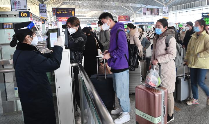 1月16日,西安北客站,离校返乡的西安高校学生在排队进站。新华社记者 陶明 摄