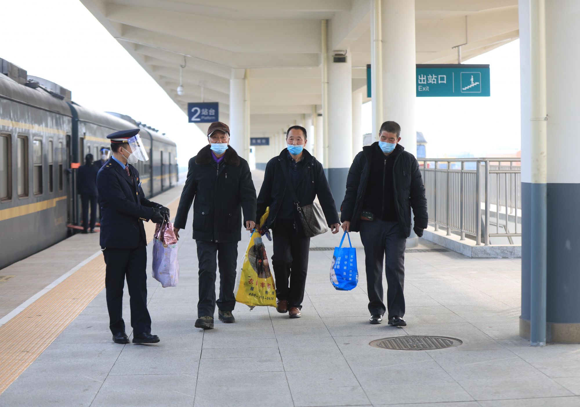 1月15日,农民们在凤凰城站下车准备去凤城市卖掉其他山货。