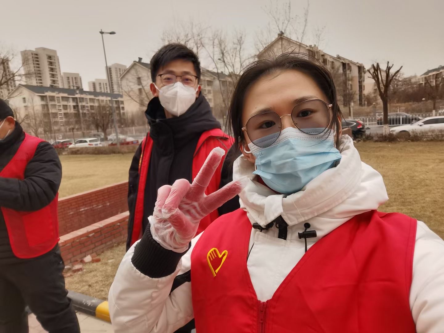 1月11日凌晨,周文桢和陈贝贝就接到天津师范大学招募防疫志愿者的通知,两个人毫不犹豫就报名了,转天二人就立即投入到社区第二次筛查的志愿服务中。