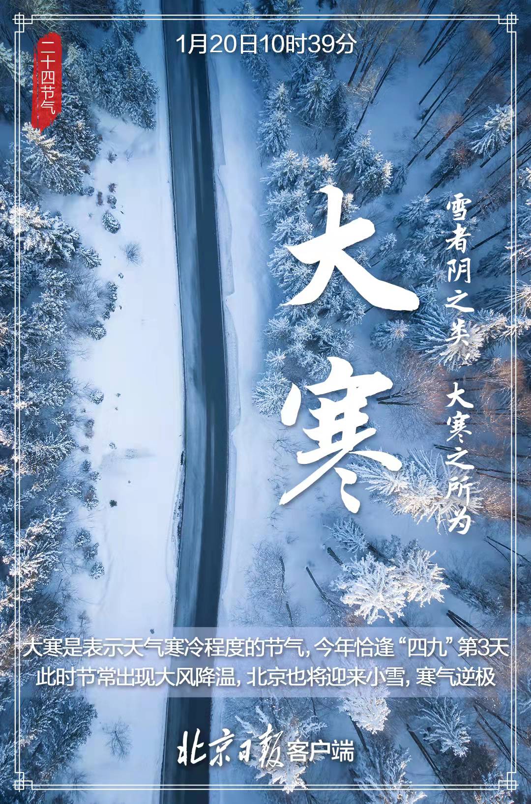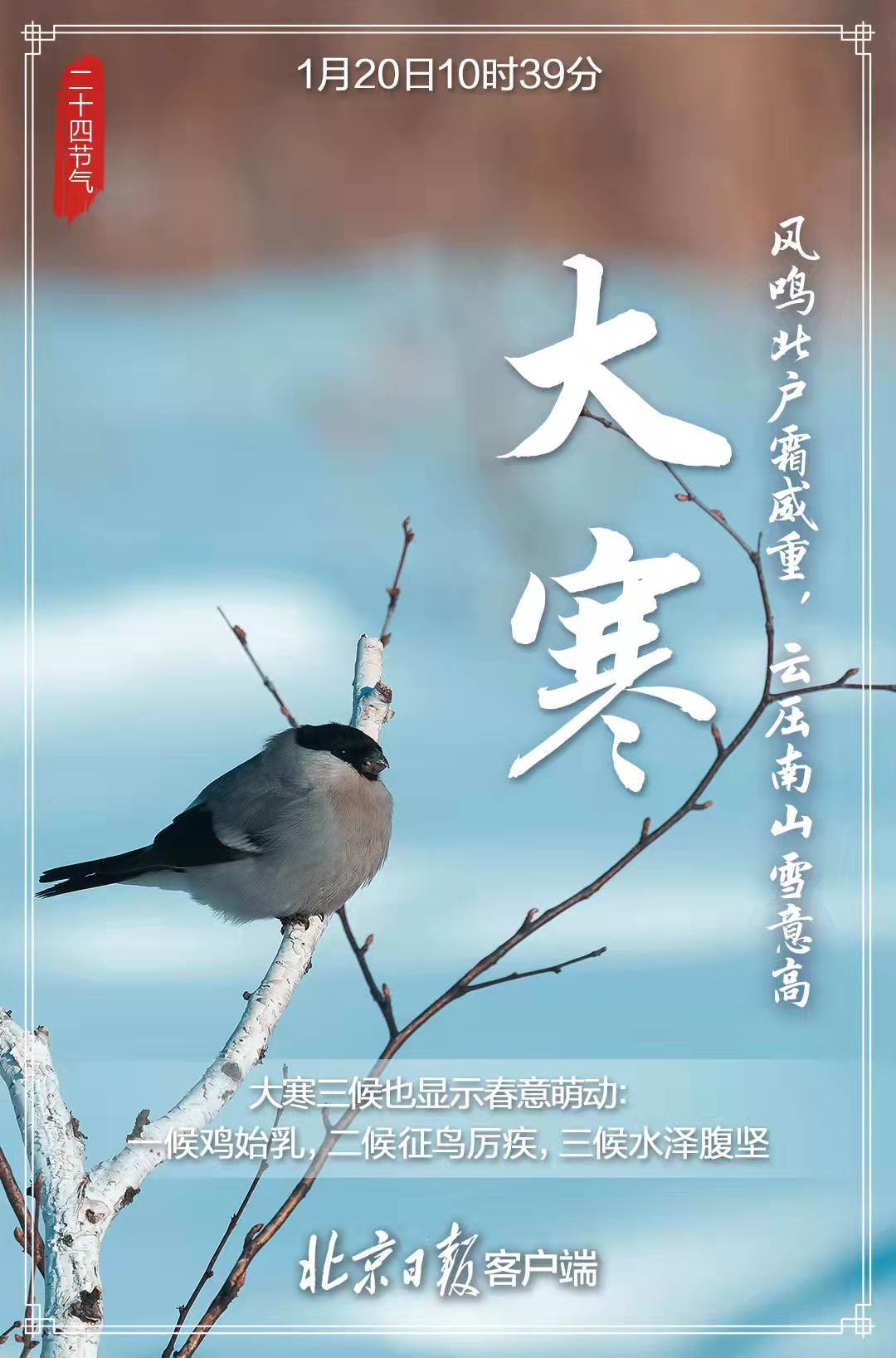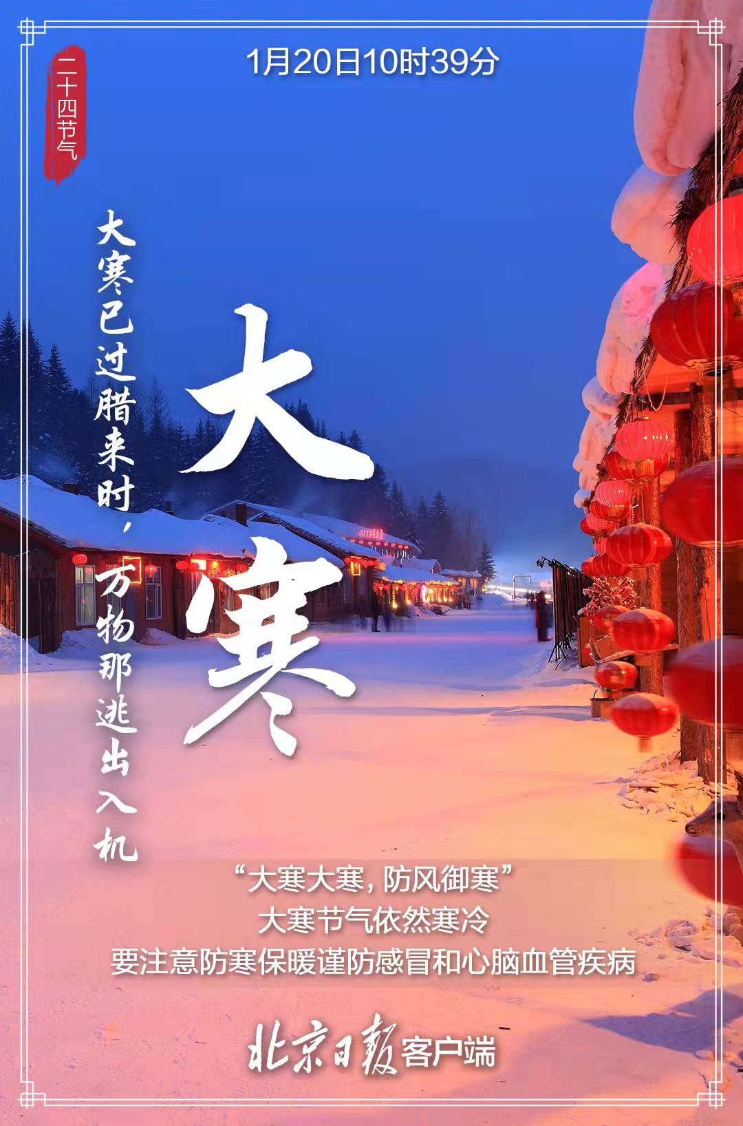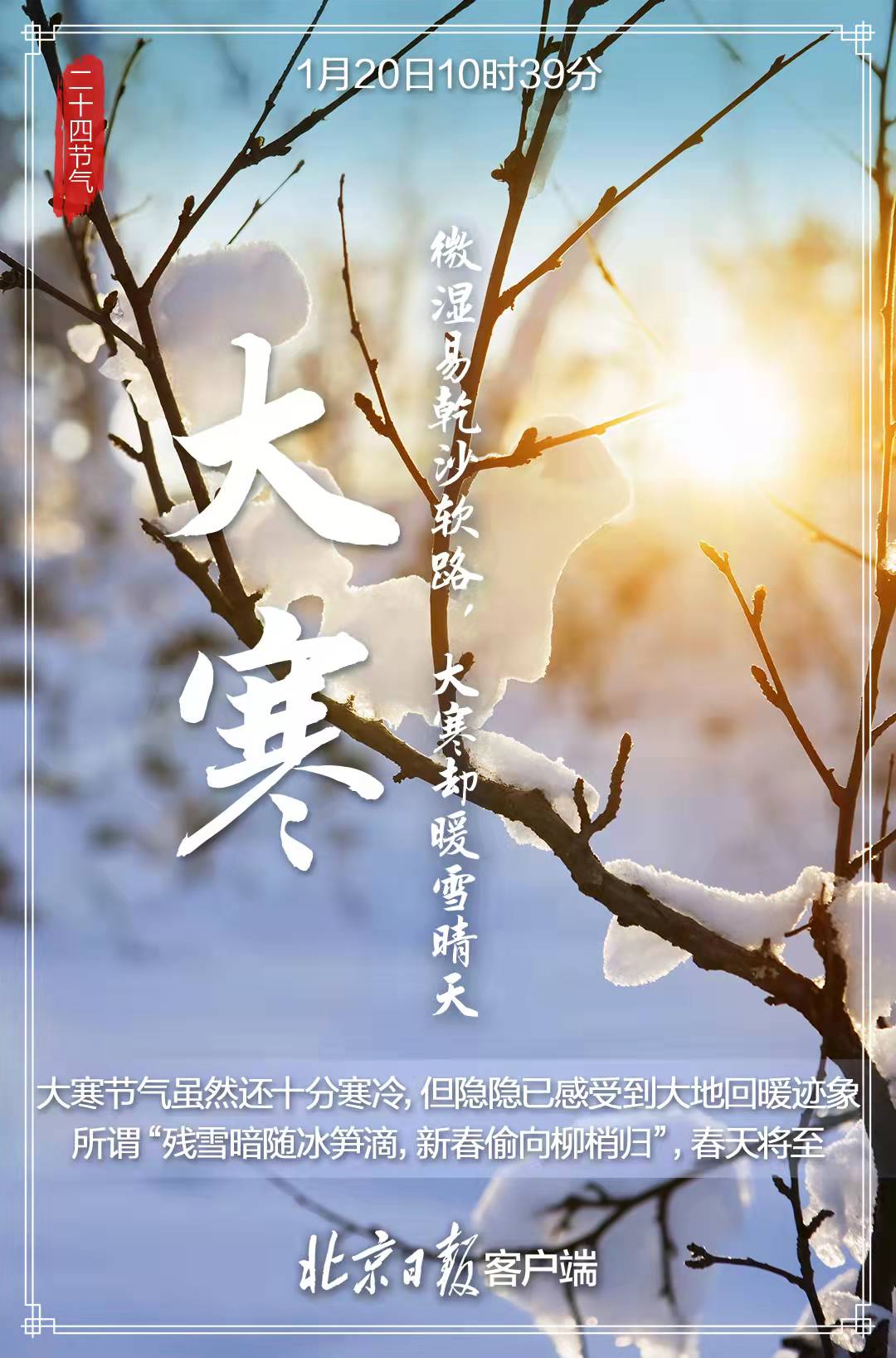 1月20日,迎来大寒节气。大寒是一年中最后一个节气,正值“四九”冰上走的时间。大寒在岁终,冬去春来,大寒一过,又开始新的一个轮回。