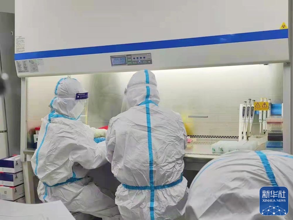 ↑天津市津南区疾病预防控制中心检验人员正在进行检验工作。(1月14日摄,受访者供图)