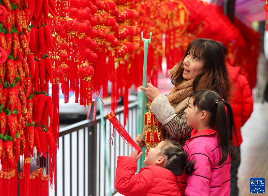 1月23日,市民在贵州省铜仁市玉屏侗族自治县年货市场挑选春节饰品。新华社发(胡攀学 摄)