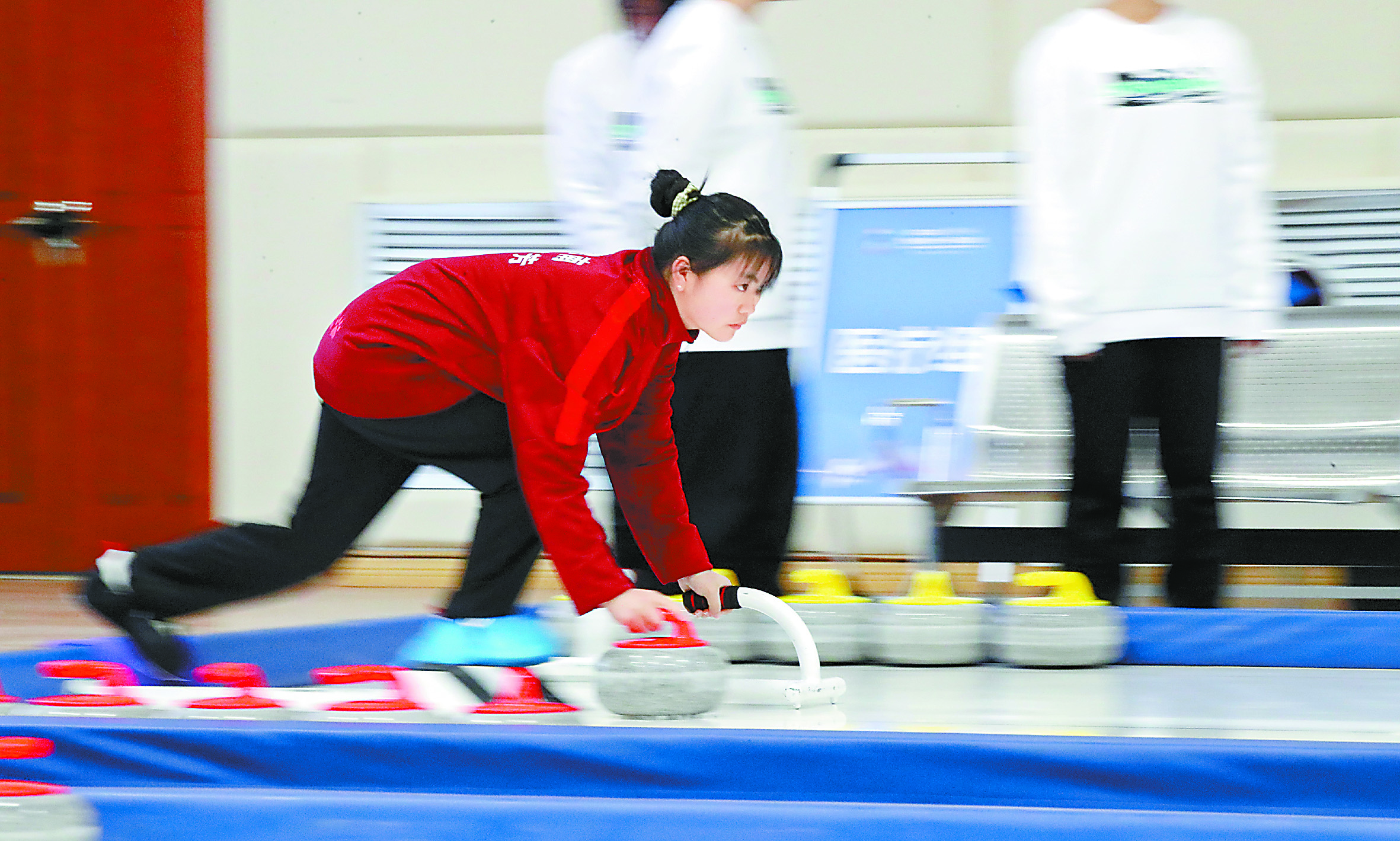 贵州省第十一届运动会首次设立冰壶比赛等冬季项目,选手激烈角逐。