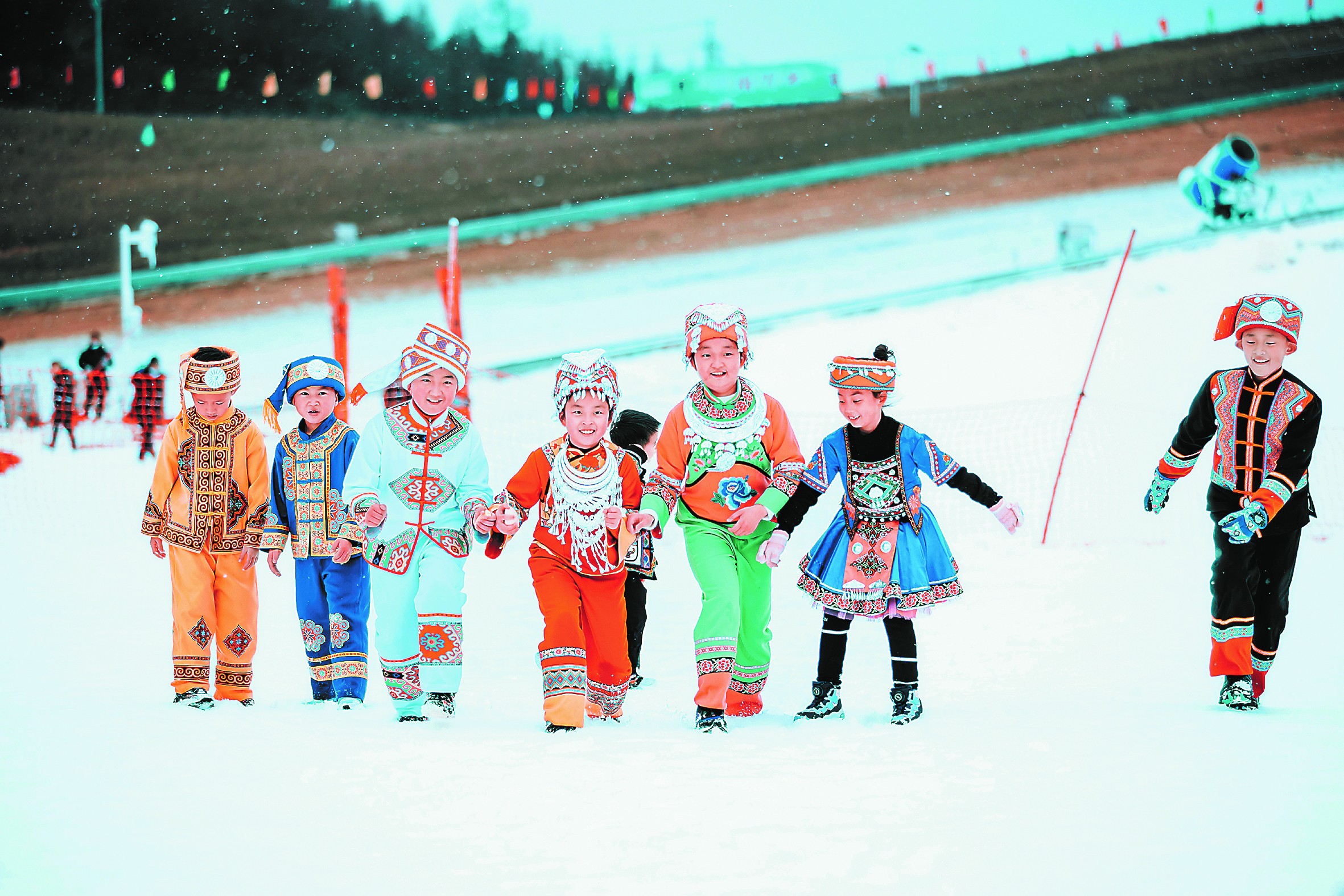 土家萌娃在滑雪场上乐翻天。 李永衡 摄