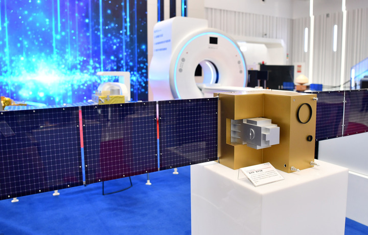 这是在安徽创新馆拍摄的“墨子号”量子卫星模型(2020年8月25日摄)。 新华社记者 刘军喜 摄